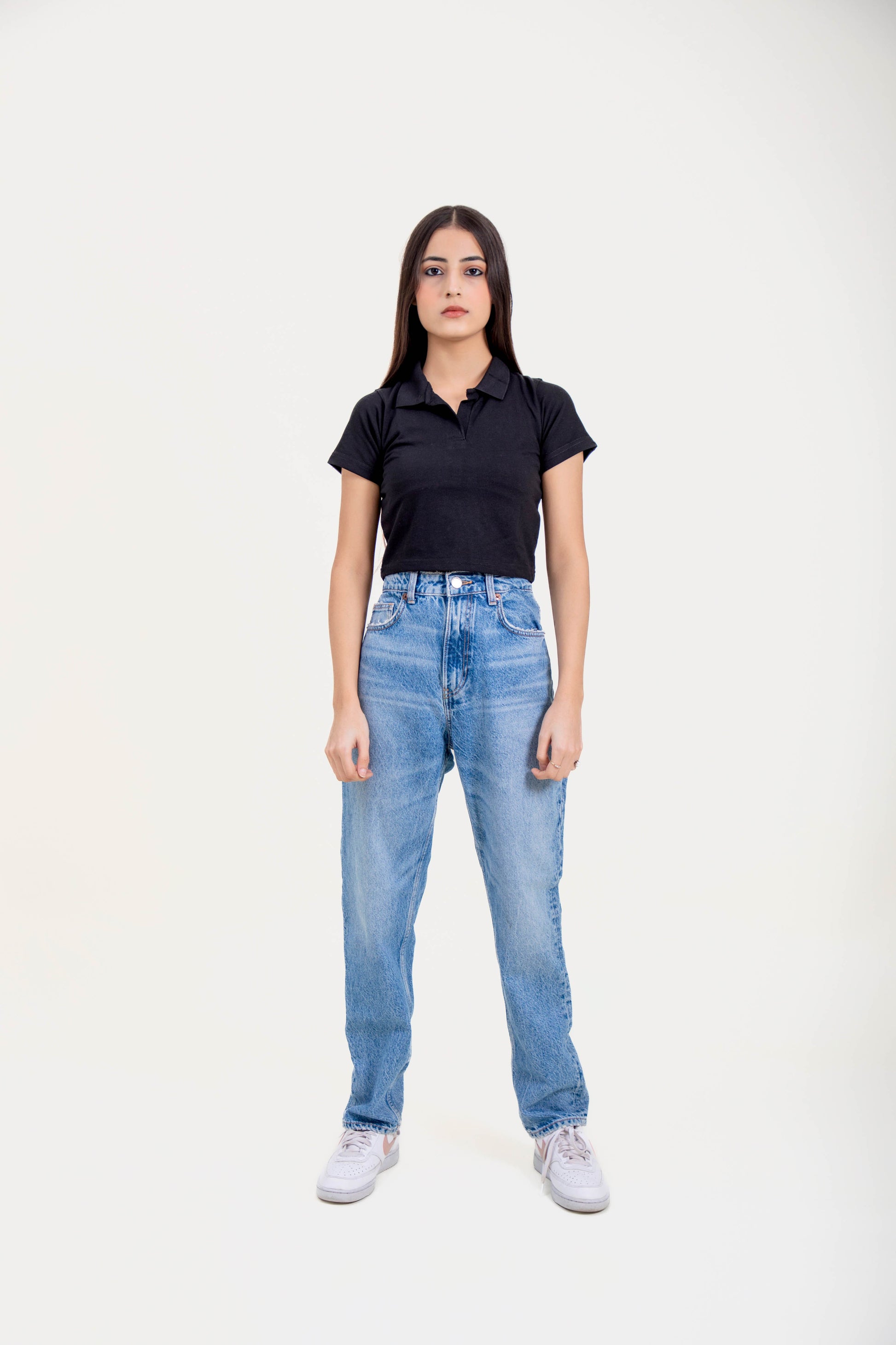 Introducing our cropped polo T-shirt, perfect for summer days and versatile enough to style in multiple ways. Made with breathable fabric for comfort and sophistication. Elevate your wardrobe with this exclusive piece.